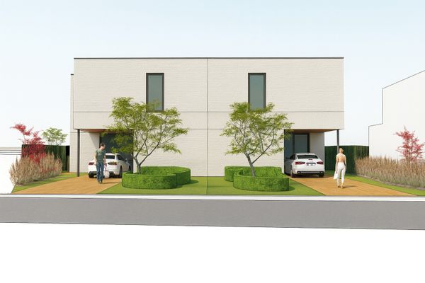In een rustige straat in Hoepertingen, deelgemeente van Tongeren-Borgloon vinden we dit kleinschalig nieuwbouwproject van twee halfopen bebouwingen terug.