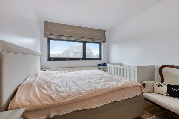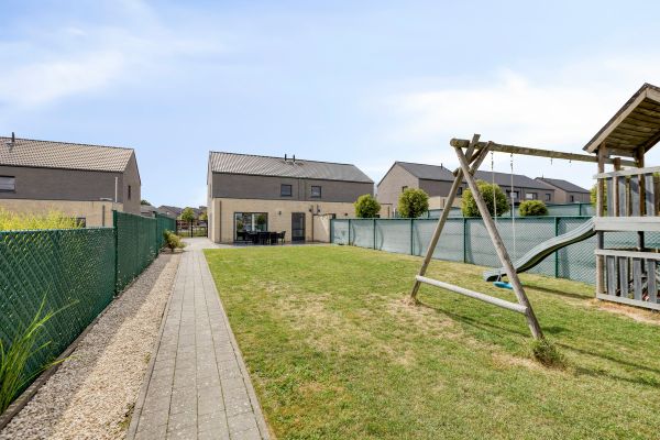 Deze halfopen bebouwing werd in 2014 gerealiseerd en is opzoek naar een nieuwe eigenaar. Langs de zijkant betreden we de woning die ons binnenbrengt op het Wouterveld 88 te Nieuwerkerken. Even doorlopen stappen we de ruime leefruimte binnen met aansluitend de keuken, in deze ruimtes zal lichtinval niet ontbreken. Met de grote raampartijen is er geen daglicht te kort. De keuken door, brengt ons tot de koele berging en de garage waar het parkeren van één auto mogelijk is. Via de keuken kunnen we ook de tuin betreden, hier is een terras aangelegd dat overgaat naar een ruime gazon. Deze is volledig omheind. Ideaal voor de kinderen om te spelen of huisdieren te houden. Op de eerste verdieping vinden we twee ruime slaapkamers en één kleinere terug. De badkamer biedt een ligbad, dubbele lavabo en een extra toilet.