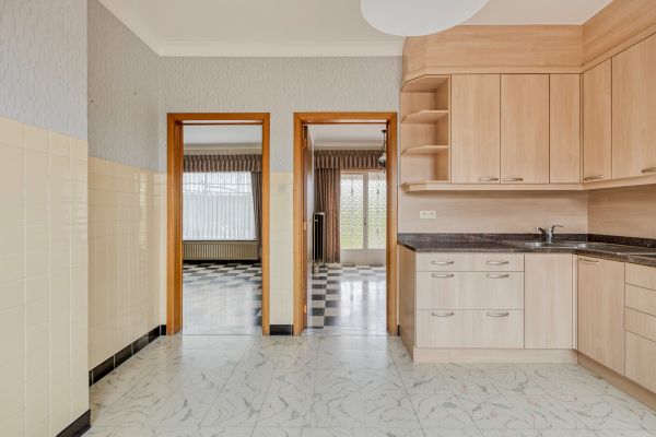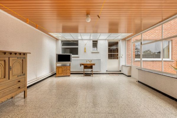 Zoek jij een woning met veel potentieel? Dan is de Doorstraat 102 te Nieuwerkerken het adres dat jij zoekt! Een typisch jaren '60 huis dat met een opknapbeurt een prachtige thuis kan worden. Deze halfopen bebouwing vinden we terug op een perceel 7are11. Gelijkvloers stappen we de inkomhal binnen die leidt naar de ruime woonkamer. Verder naar achter betreden we de keuken, veranda en twee bergruimtes. Op de eerste verdieping zijn drie ruime slaapkamers, een dressing en badkamer te ontdekken. Aan opbergruimte is er geen gebrek, achteraan de woning bevinden zich twee garages waar het stockeren van materiaal geen probleem is.