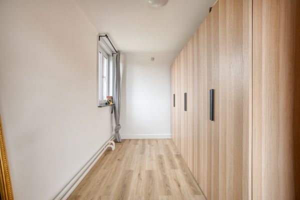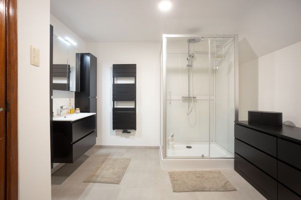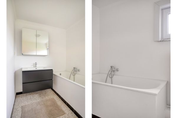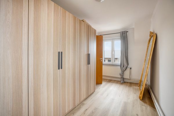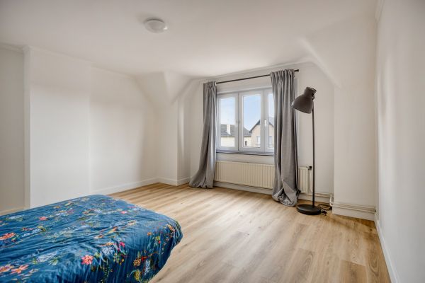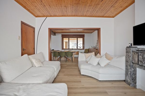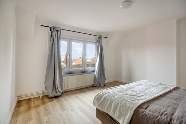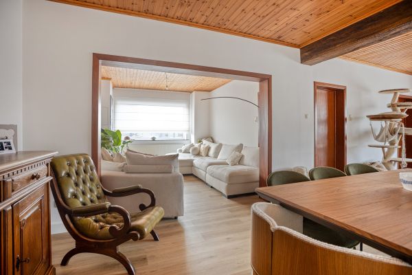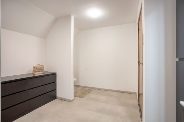 Op de bovenverdieping bevinden zich drie volwaardige slaapkamers en een volledig vernieuwde badkamer (2023) met inloopdouche en dubbele lavabo. De zolder werd recent dichtgemaakt en geïsoleerd, wat bijdraagt aan het wooncomfort en de energiezuinigheid van de woning. De eigendom beschikt over een aangenaam terras, eveneens aangelegd in 2023 — ideaal om na het werk tot rust te komen.