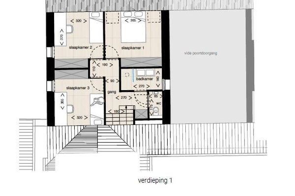 2de verdiep: 3 slaapkamers, badkamer