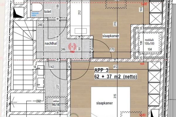 Op de 2e verdieping van dit project bevindt er zich een duplex appartement. De indeling is als volgt: inkomhal, open keuken met eethoek, woonkamer, berging/wasplaats, apart toilet. De trap naar boven leidt ons naar de badkamer met inloopdouche, apart toilet, slaapkamer 1 en slaapkamer 2 . Achteraan is nog een terras voorzien. Autostaanplaats en fietsenberging aanwezig.