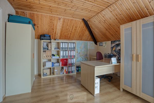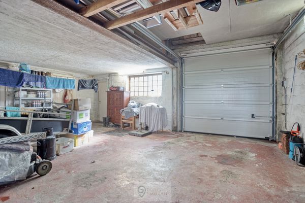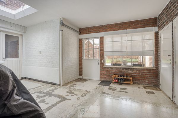 Even terug naar beneden... Achter de keuken vind je een bijgebouw/veranda terug, waar zoals vroeger het toilet, de badkamer en achterin de garage terug te vinden zijn. In de garage is aan ruimte geen gebrek, zelfs boven de garage is nog een zolder te vinden die te bereiken is met een vaste trap waar gemakkelijk spullen opgeborgen kunnen worden.