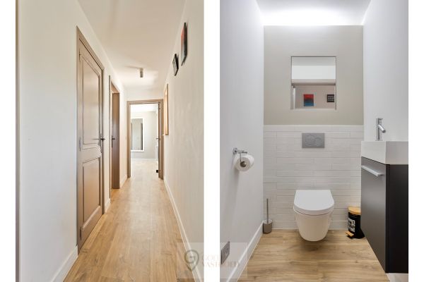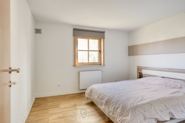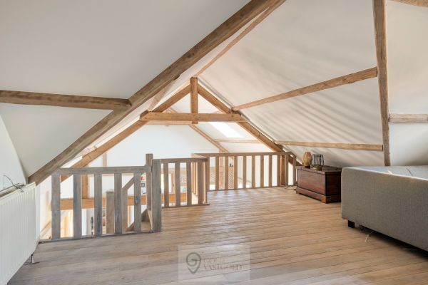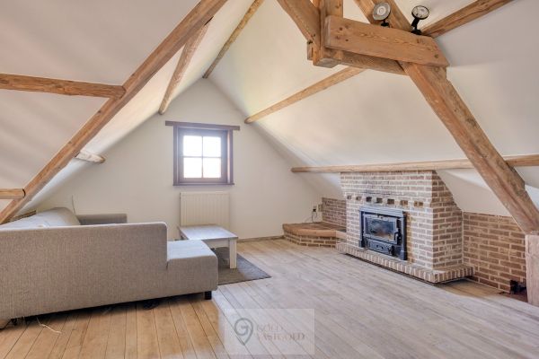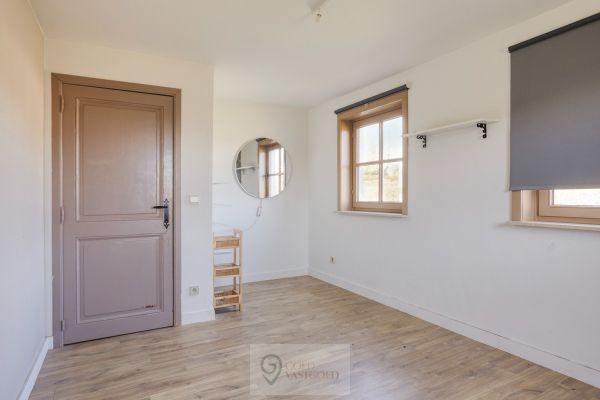 We blijven gelijkvloers... Waar de indeling als volgt is: slaapkamer 1, (slaap)kamer/dressing 2, toilet 1, toilet 2, de opvallende badkamer met inloopdouche en voldoende kasten en slaapkamer 3 met aansluitend een dressingruimte. Op de bovenverdieping is een knusse tweede woonkamer met houtkachel, waar een goed boek op een koude winterdag wonderen verricht. Verder is er nog een (zolder/slaap)kamer op de eerste verdieping.