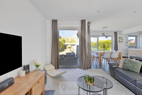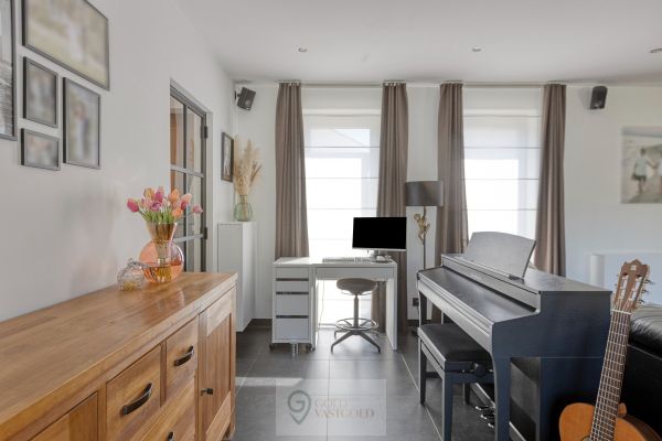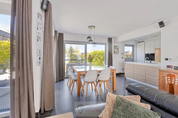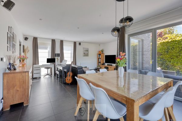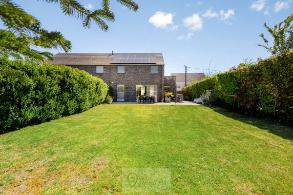 De woning, gebouwd in 2009, bevindt zich op een perceel van 4a20ca en beschikt over een bewoonbare oppervlakte van 115 m². Bij het binnenkomen wordt u verwelkomd in een inkomhal met gastentoilet. De lichtrijke woonkamer met open keuken vormt het hart van de woning en biedt een mooi zicht op de volledig omheinde tuin met noordwestelijke oriëntatie – ideaal om te genieten van de namiddag- en avondzon. Aansluitend aan de keuken bevindt zich een praktische berging.