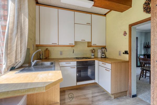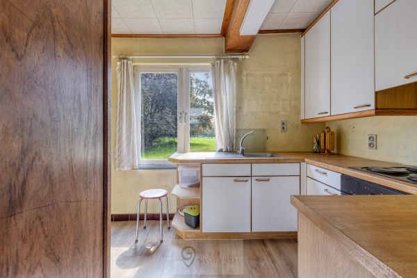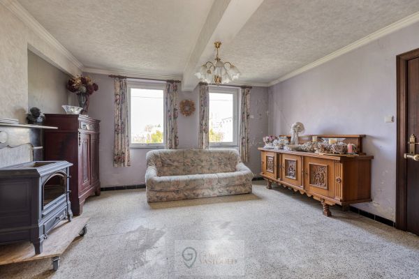 De woning geniet van een prachtig, open zicht en ligt in een aangename, landelijke omgeving. Het bestaande woongedeelte omvat momenteel een leefruimte opgedeeld in verschillende delen, een keuken, badkamer, bureauruimte, twee slaapkamers, een berging en een zolder.